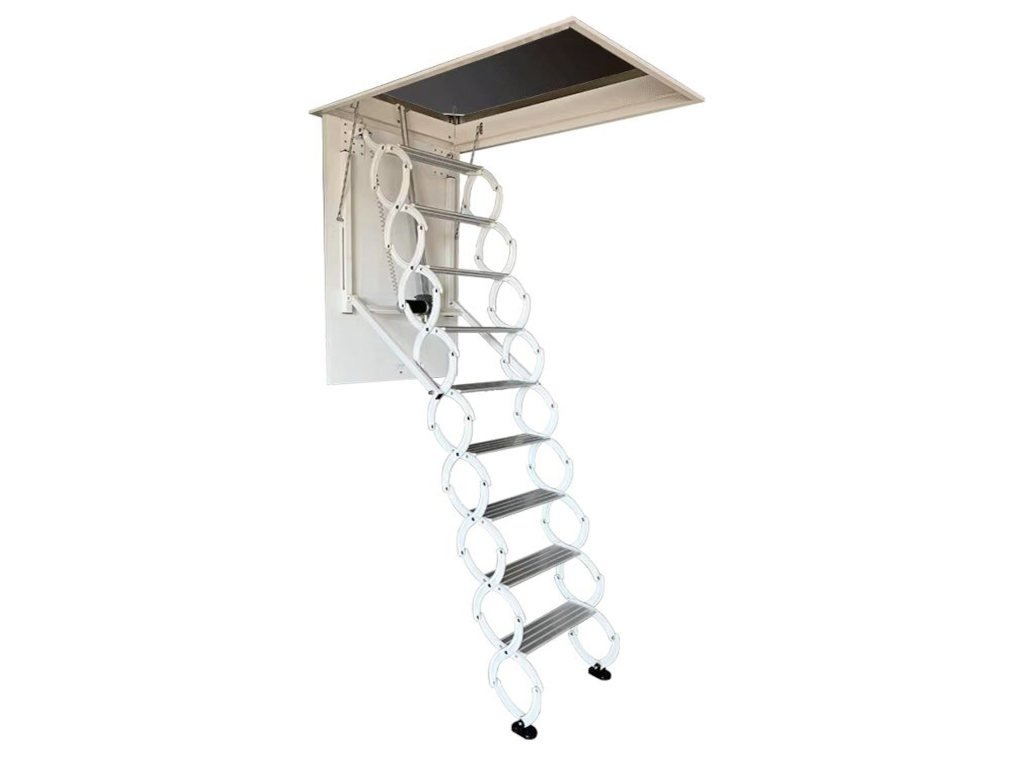Praktikus kihúzható elektromos lépcső a felső szintre való feljutáshoz. A lépcsőt nem kell közvetlenül a padlástérhez használni, hanem a garázs, a tetőtérbővítés vagy a műhely következő emeletére való feljutáshoz is használható. A távirányítóval a lépcső nagyon könnyen kezelhető. Az elektromos motor segítségével a lépcső pillanatok alatt kibontakozik, és már használhatja is. Visszacsukása eredeti állapotába hasonlóan gyors. A lépcső a mennyezeti keretben rejtőzik, és nem akadályozza a teret.