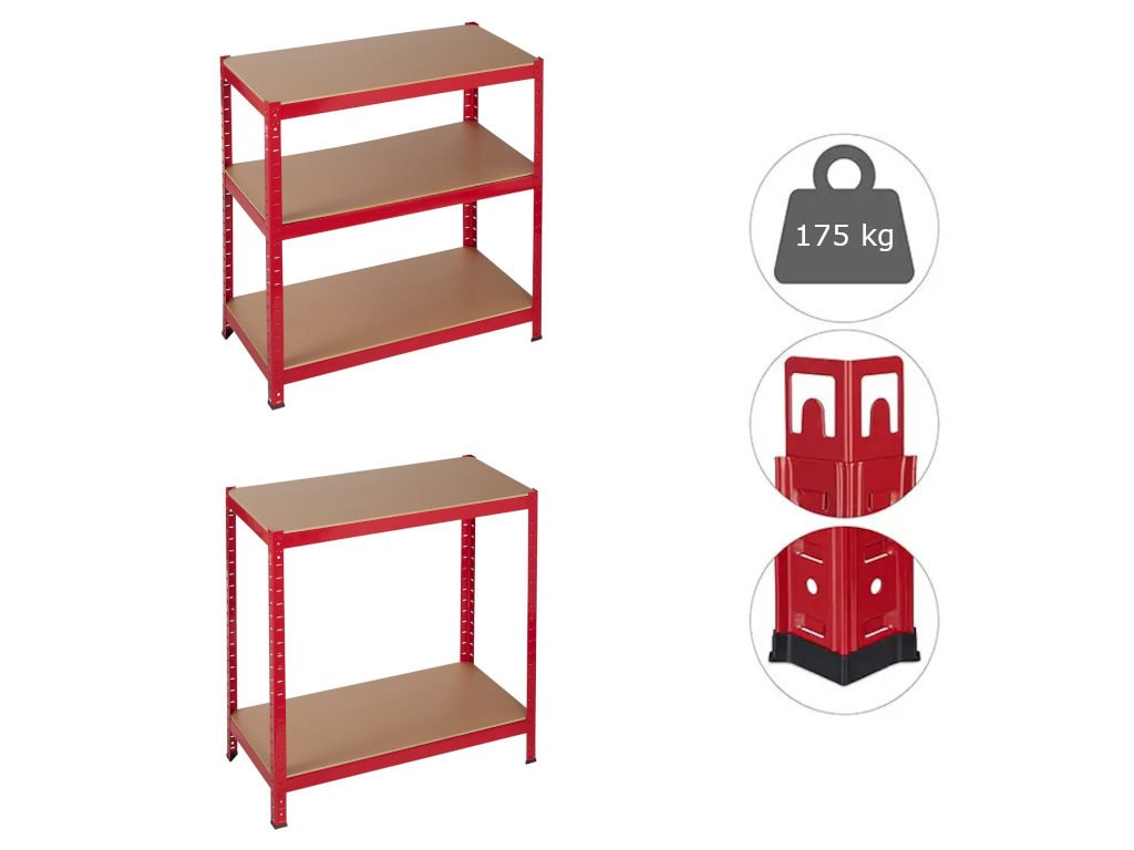 Salgó polc LAKKOZOTT 1800x900x300 mm 5 polccal, teherbírás 875 kg - VÖRÖS (színárnyalat RAL 3020)