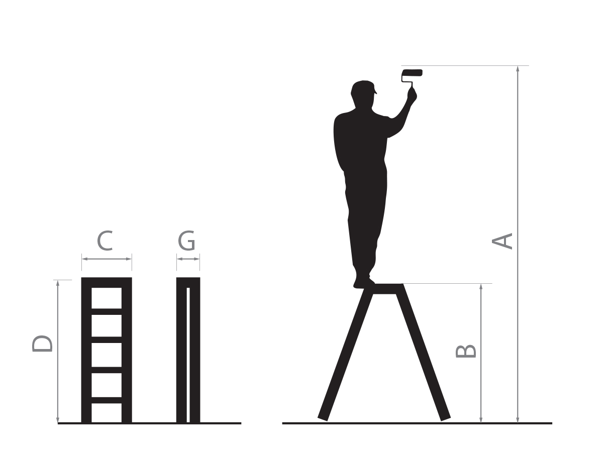 Egymástól független szomszédos lépcsőfokból álló csúszásmentes, hullámos felső platform biztonságos és kényelmes munkaterületet biztosít. Használható szerszámok vagy vödör tároló felületeként is.